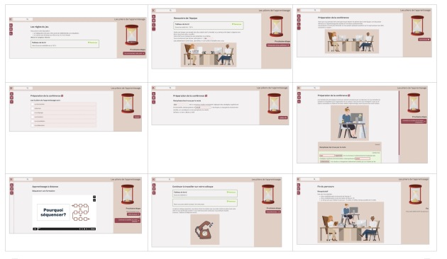 Elaboration des étapes : accueil, contenu, quiz, module de cours, orientation, média ;