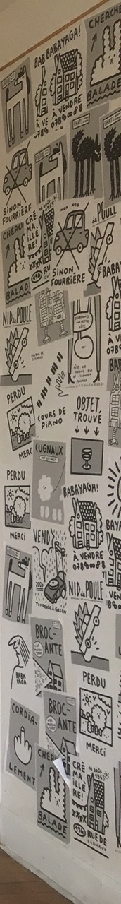 MCL : oui voilà, comme si c'était des tags, mais en fait c'est des petites affiches A4. avec un peu toute avec le même patte graphique.