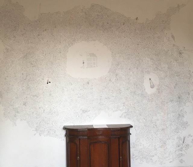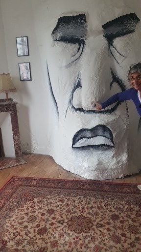 MCL : et une énorme tête en papier mâché, on pourrait dire visage, qui sort du mur, qui est en relief par rapport au mur, alors