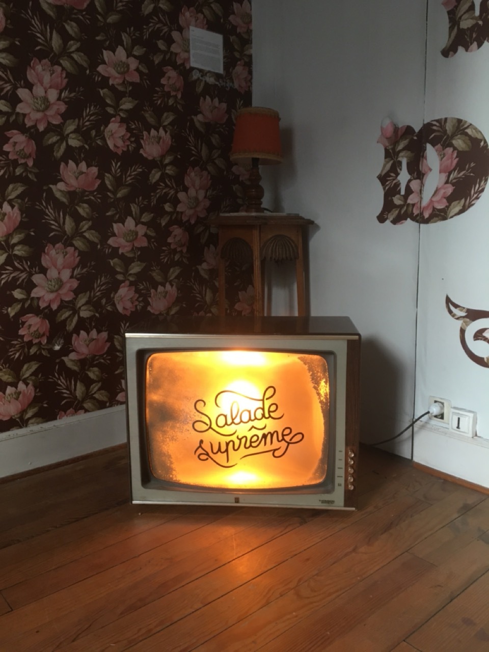 C'est une vieille demeure typique toulousaine auquel personne ne faisait vraiment très attention, jusqu'à ce qu'elle soit transformée par le collectif d'artistes Salade Suprême. Depuis qu'elle a été investi par ce collectif d'une cinquantaine d'artistes, tous les passants s'arrêtent pour la regarder. Et puis on peut entendre des « Ouah, c'est génial, on se croirait dans un décor de dessin animé ! » Il faut dire que la façade est rose, mauve, bleu, vif, bleu électrique, vert, vif. Et puis il y a comme une espèce de tube en fil de fer modélisé qui descend depuis la fenêtre du premier étage, pour aller jusqu'au sol.