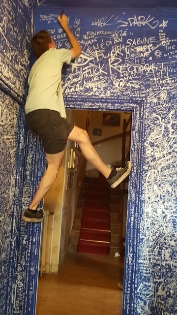 FB : Alors on va peut-être aller au bar. On peut finir par aller boire un verre, en bas, dans la cave.